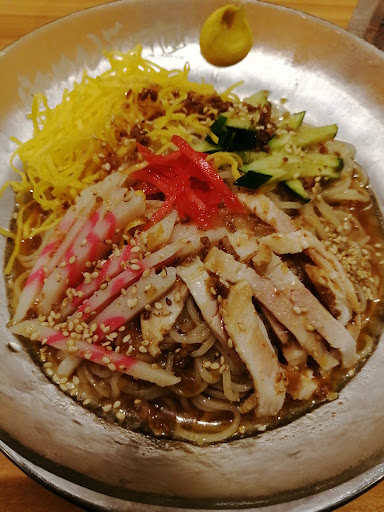 冷やし中華はほとんど麺という感じで きゅうりはたぶん輪切りきゅうり二枚分程度。麺が好きな人はいいかもしれないけれど野菜がほぼ無くて卵も焼いたものじゃなくて偽物ぽい加工品みたいなものをのせてるだけなので冷やし中華は星2 店内はあまりきれいに清掃されてなくて 床が少し油ぽい。