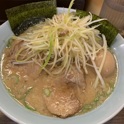 屋台に限りなく近いようなバラック店舗は、カウンターのみの10席+1。 雰囲気からして客の回転が早そうな店だから、これくらいでもなんとか回せるか? 当初「和はとんこつ」という認識で「博多系」を想像していたが、麺は東京などの醤油ラーメンに似合う細縮れ麺。 ちょっとだけ太めにも感じるが、横浜家系よりも細く東京ラーメンの基準ないかな? トッピングの山のような白髪葱。その下には更にもやしが隠されている。 それらの影に隠れて正確に分からないが、麺量も少し多めで150gは超えてるかな? 麺のすぐ上に、びっしり平面的に敷かれたチャーシューにブロックされ麺にはなかなかたどり着けない。 ちなみにチャーシューは、厚めで「ほろほろ系」の口当たり。 ギリギリ箸で持ち上げられる。 トッピングの量からすると、++と加算してネギチャーシューメンの価格設定をしてるのか?