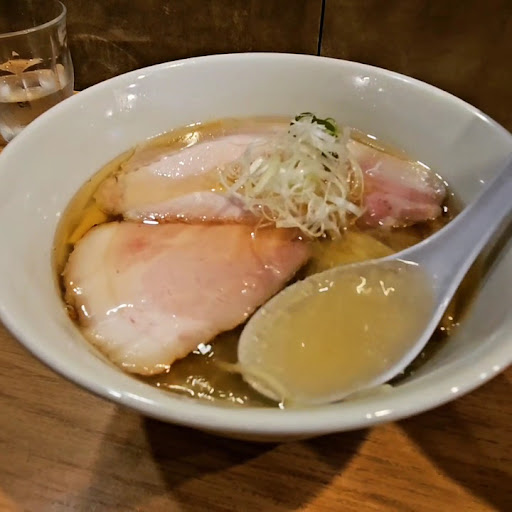 這家店是以雞白湯最為聞名,連續兩年登上TRY雞白湯部門第一名,印象中也有一些台灣網紅來介紹過,不過來過的台灣人應該還不多 從千歲船橋站走了大概5分鐘後就到MAIKAGURA了,平日開店前8分鐘抵達,前面已經排了8個人,所以很殘念得跟第一輪無緣了,等了大概40分鐘後終於入座了 這家雖然是只有雞白湯登上TRY雜誌,不過看到日本浪人介紹聽說這家的鹽味雞湯拉麵與雞白湯拉麵相比甚至是有過之而無不及,因為也吃不到西川的煮干拉麵了,而且這家店是可以連食的(一些知名的店家例如前幾天去的嶋就是不允許連食的),就決定在這邊直接連吃兩碗 排到一半後先進店買了餐券,我買了一張鹽味拉麵的餐券還有這家店最知名的白松露雞白湯拉麵的餐券,滿意外的在配料完全相同的情況下鹽味的比醬油的還多了130日幣 買完餐券後店員會問上的順序,原先是打算先吃白湯的,不過入座後店主來用日文跟我說"松露雞白湯的味道比較重,建議先吃鹽味的"(大概啦,我也沒有完全聽懂),我就跟隨店主的建議請他先幫我做鹽味的 在等麵的過程中可以看到店主在煮麵時很帥的甩麵動作,這個甩麵的動作還有個有點中二的名字叫"天空落とし",是承襲自他的師父中村栄利的經典動作,讓在這家店吃麵時還多了一些視覺上的震撼