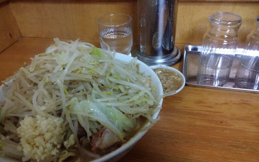 あと量が少ない。自分は麺大盛で野菜、ニンニク、脂をコールしたが 大食いの人ならペロリとイケる量。 普通のラーメン屋に比べてちょっと多いかな?というレベル。 二郎系としては落第レベルの少なさ。 あと脂が別皿というのも意味が分からない。