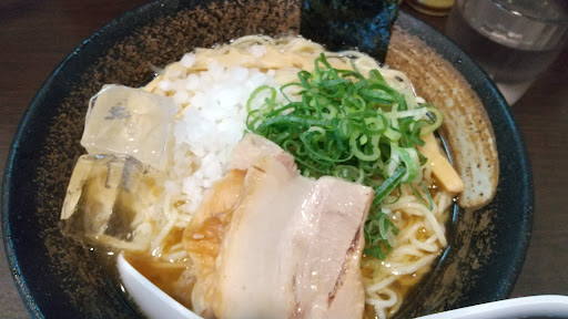 約10ヵ月後の9月上旬、冷やしラーメンが終わってしまうかと思ったので行ってみた。店主とは吉田拓郎フリークなので和やかな雰囲気。周辺ではライバル店が減ったり、増えたりしているが、ここは変わりないな。やはり、美味くて安いところは強い。冷やし煮干しラーメンが、平日なので大盛サービスで税込み900円。ただ、10月からは米と卵の値上げのため、ご飯もののサイドメニューは値上げするそうです。店主に替わりましてご容赦ください。麺は値上げ...