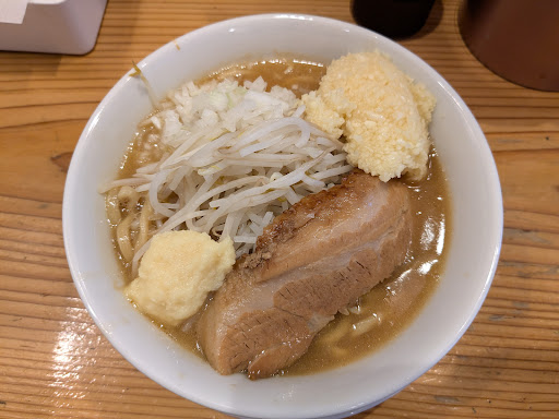 金曜11時半過ぎに再訪。 外待ち3名。 何だか雰囲気が違うなーと思っていたら、、こちらは、普段のメニューは鶏の清湯だが、毎週金曜日は「ブタジマくん」の暖簾を出して、二郎インスパイア系のメニューのみを提供しているのだ。