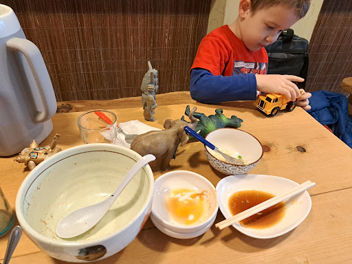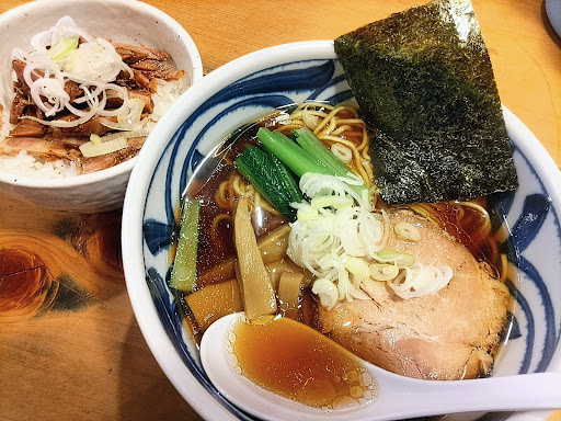 Friendly and helpful, this small ramen shop is consistently delicious and hearty. The three soup bases are standards- salt, soy, and miso. There are translations on most items on the machine to help the kanji impaired like myself. Not large enough for groups over 6 people, but has enough space to comfortably sit a groups of 4, and is secluded enough to be perfect for a group of 2. I've never felt rushed when I'm in there, and the toys on the shelf are a draw for my 4 year old son. The music is gentle and soft so we can carry on a conversation and enjoy the time together. Love this hideout we've found, just a 5 minute walk south from...
