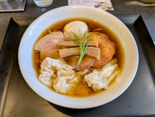 Read moreThere’s always a queue in front of this ramen shop during lunch hours, and after finally trying it on a weekday night to avoid the crowd, I totally understand why. For around 1400 yen you get the most popular ramen option, which comes with pork, chicken, wontons, and an egg. No need to order extra toppings, and extremely filling and tasty. You can’t customize the texture of the noodles, but it doesn’t matter because they are cooked to silky perfection; in fact, I would say that in terms of the texture of noodles, this is my favorite ramen place ever. Btw, the atmosphere is actually pretty classy for a ramen shop (partially due to the jazz music being played). Looking forward to trying the...