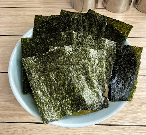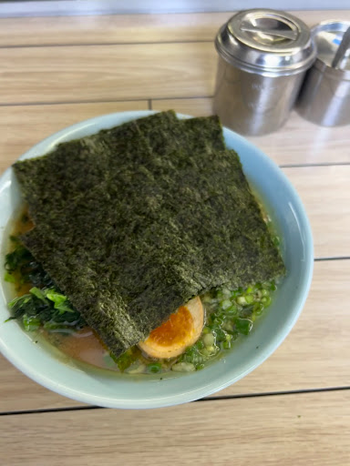 最初にらすた麺(油多め)が運ばれてきました。 海苔がたっぷりと乗っていて、麺が見えないほどです。 スープはあっさりとした豚骨醤油味で、脂多めにしたためか、表面にはしっかりとしたラード層が浮かんでいます。 スープを一口飲むと、まろやかな味わいとコクが口の中に広がり、脂のパンチが効いています。 麺は太めでかなり硬めの茹で加減でした。 家系ラーメンの特徴であるモチモチとした食感が楽しめるはずが、少し硬すぎると感じる人もいるかもしれません。 次回は、麺柔らかめで注文してみようと思います。
