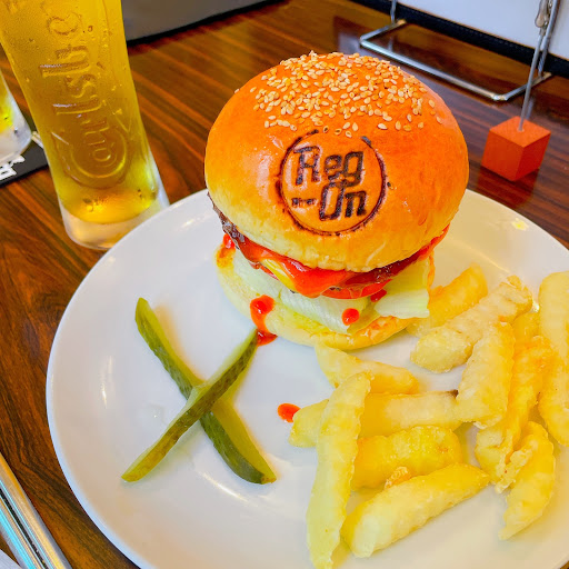 Australian beef burgers served in a tiny, laid-back space with American memorabilia on display.