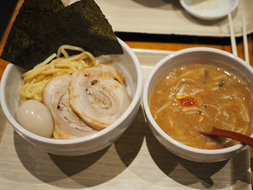 Rich miso ramen soup topped with vegetables, eggs & barbecued pork, plus tsukemen dipping noodles.