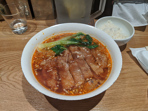 Read moreある日の夕暮れ時、街の喧騒を抜けてふらっと立ち寄ったのがこのお店です。最寄り駅から歩いて5分くらい、首都高速を渡った先にひっそりと佇むその場所は、まるで隠れ家みたいでちょっとワクワクします。店内に入ると、木材とモルタルが織りなすシンプルだけど温かみのある雰囲気が迎えてくれるんです。カウンター席がメインで、厨房をぐるっと囲むレイアウトがなんとも居心地いい。名物の「排骨担々麺」を注文して、無料のご飯もちゃっかりつけてもらいました。待ってる間に卓上の辛子高菜をつまんでみると、これがまたピリッと効いてて食欲をそそります。そしていよいよ着丼!見た目は濃厚そうだけど、スープを一口すすると意外とあっさりしてるんですよね。ゴマの風味がふわっと広がって、ラー油の辛さが後からじわっとくる感じが絶妙です。メインの排骨は揚げたてでサクサク、パリッとした食感がたまらない!食べ進めるうちにスープに染みてしっとりしていくのもまた違った魅力があって、最後まで飽きずに楽しめました。ご飯にスープをかけて、排骨を乗っけて食べるともう至福の時間です。ただ、他者の意見として量が多すぎて食べきれないって声もあるみたいで、確かにボリュームはしっかりありますね。小食な人はちょっと覚悟が必要かも。 また別の日、今度は「冷やし排骨担々麺」を試してみたくて再訪しました。暑い日でもさっぱり食べられるかなって期待してたんですが、これが大正解!冷たいスープがキリッと締まってて、野菜のトッピングも少し変わってて新鮮な感じがしました。普段熱いラーメン派の私でも、これはこれでアリだなって思っちゃうくらい美味しかったです。でも、冷たい分だけスープの味が薄く感じる瞬間もあって、そこは好みが分かれるところかな。他にも「醤油ラーメン」や「つけ麺」があるみたいで、メニューが豊富なのも嬉しいポイントです。特に醤油ラーメンは熟成醤油を使ってるらしく、シンプルながら深みがあるって評判なんですよね。次はそれに挑戦してみようかな。 そういえば、このお店って昔この辺りにあった有名店の味を引き継いでるんですよね。50年以上愛されてたソウルフードが復活した形みたいで、ちょっとした歴史の重みを感じます。店名も「蓮華の五徳」っていう意味が込められてて、泥の中から美しい花を咲かせる蓮のイメージが素敵だなって思いました。実際、訪れるたびに新しい発見があって、何だか通いたくなる魅力があります。ただ、平日だと夕方から休憩時間があったりするみたいで、タイミングによっては入れないこともあるから要注意ですね。値段はメインのメニューが1000円前後で、無料のご飯がつくことを考えるとコスパは悪くないです。でも、混んでるときは高菜やティッシュが隣から借りないといけないレイアウトがちょっと不便かなって思いました。それでも、やっぱりあの排骨のサクサク感とスープのバランスは唯一無二で、また足を...
