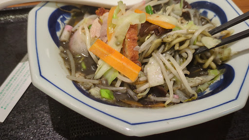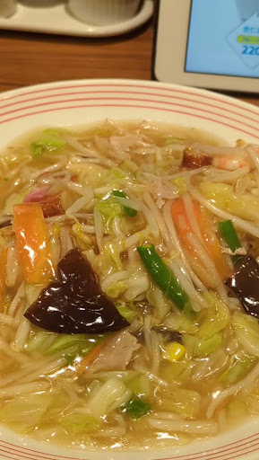 One of the awesome place around shimura Sakashita. Especially champon is awesome here.? Price is reasonable and this place is pretty awesome. Pretty busy and good to go place. Loved to visit again. Although it is Nagasaki Champong shop, my dumpling set meal is my favorite. Because no garlic is contained, it can be eaten with confidence on the next day even the next day. Since I am near my home, I go occasionally. Children's fried rice set, too, has a firm amount and our child can not eat between me yet ... lol. Because I eat dumplings, I always think that I have a child dumplings set meal. When I ask for a child set, I can do gachapon, but toy is a mystery. Where are you going to find it? Does the clerk 's customer service depend on people? I feel it. I wonder if there are people with smiles and people who are not. One of the awesome place around shimura. It’s pretty heavy and big bowl meal on single set. Most of noodles and rice. Lots of vegetables items are once should try items. Simple items like dumplings and kids sets are much easy if you are visiting first time. Environment is quite good inside and little noisy because of rode side. Nice...