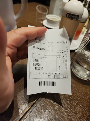 近くの竹取の湯に行く前にこちらで昼食をと来店。 スパ銭であれば、一風呂浴びてからの飲食となってしまう事が多く、ヒートショックの原因になったりする。それらを防ぐためにまずは近場の飲食で済ませるのだ。 リンガーハットであれば全て国産の素材で安心、野菜のボリュームもたっぷりとあり、栄養バランスも抜群である。前は麺のないタイプの、野菜スープがメニューにあり、ダイエット食として満足感も高く重宝していた。 水も美味しいんだけも、当人酒は飲まないのでジュースとかウーロン茶などがあればな〜と思っている。 店頭には冷凍品の自販機もあって、仕事帰りに買っていけばそのまま家でリンガーハットが出来る。 あとは野菜スープやってる店舗が増えてくれればな〜