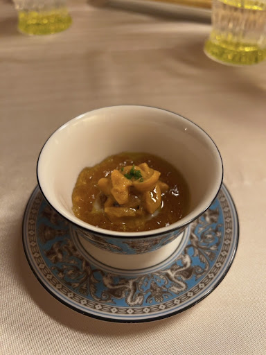 ワインはボトルではなく料理に合わせたペアリングを頼む。 おそらく5杯で1.2万円前後だったのではないかと思う。 華美な服装をしない我々なので、懐を気にしてくれたのかもしれないが、最近の人気店の値付けを見るととても安く感じてしまう。 若干料理に負けているセレクトもあったが、全般としてとても美味しく飲めたので、とても満足であった。