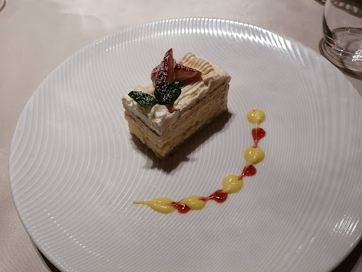 smoked salmon, white asparagus, mascarpone cheese pasta That of the great smoked salmon aroma! Crisp and sensitive of white asparagus also good! ! I will proceed have worked is roasted here also garlic pig Firemarine! dessert of white asparagus what tiramisu Huh? This tiramisu it? completely different! ! delicious! ! A little salty feeling and sweet cream became a habit with crisp