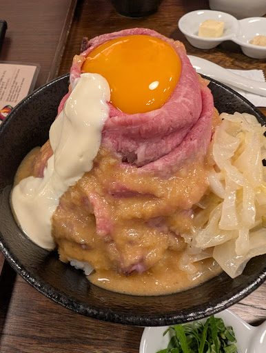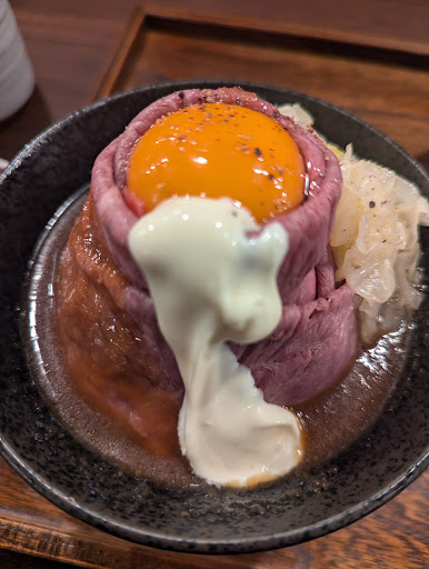 I ordered their signature roast beef bowl and honestly, it was one of the most visually stunning dishes I've ever seen. The beef was sliced thin, perfectly pink, and stacked high like a meat volcano, crowned with a golden egg yolk. The flavors were just as impressive—tender, juicy, and packed with umami. I opted for the Japanese Black Wagyu version, and it absolutely melted in my mouth. Every bite was indulgent without being overwhelming.