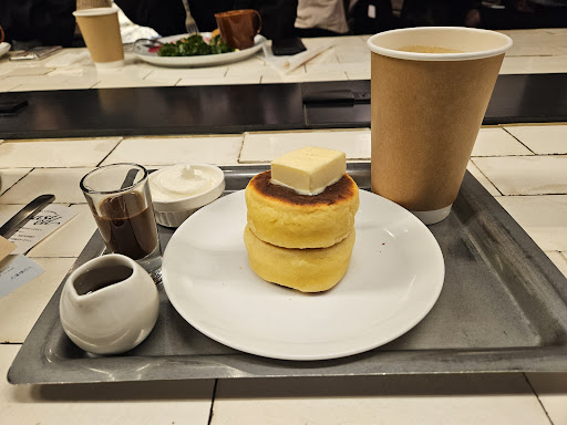 There was a sign for pancake biscuits covered in fresh strawberries that caught my eye. I realized that the Yemeni pour-over would pair perfectly with the strawberries, and I love Japanese strawberries. The critical reviews on Google made me want to try them, too (a bunch of people who didn't realize that these were more like biscuits than pancakes). I quickly ordered them, and they came out just minutes later while my coffee was still hot. It was exactly how I would expect pan-made biscuits to be (which was good), and the dish definitely paired well with the coffee. The strawberries (which were seasonal) were very juicy and ripe. Not as stellar as the ones I had from Fukushima the day prior (which were so good I will fondly remember them for years to come), but still very good.