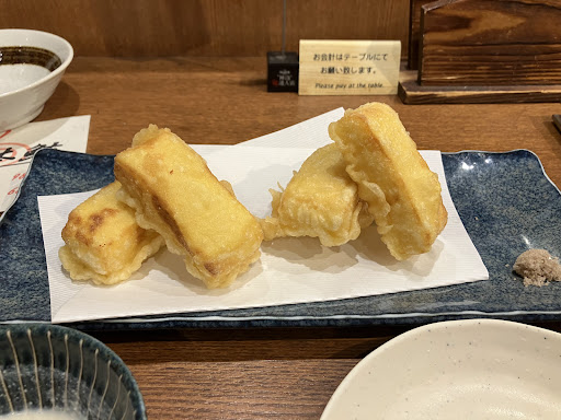 さくっと楽しい食感の天ぷら衣から、こんにちはしてくれるだし巻きのふわっとした食感と優しいお出汁のお味と香り、、 この瞬間に日本に生まれてよかったと思いますね、、