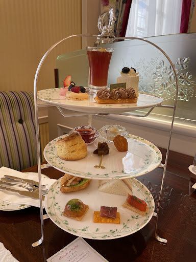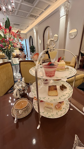 2022.11 週末に家族と二人で伺いました。予約をするのを忘れてしまい、開店してすぐ伺ったのですが予約がいっぱいだったようで、予約客の入店後の案内と滞在時間の短縮(通常は2時間のようです)で良ければとのことでしたので、了解して入店しました。 アフタヌーンティーをお願いしたところ、「少し待っていただく事になりますが」との事でしたが、あまり待たずにいただけました。 飲み物は温かい紅茶(アイスもあります)を注文しました☕カップが大変お洒落でした(家族とは別の模様のカップでした🌺) 温かい紅茶は、ポットで提供されますが2杯半くらいの量入っていました。ミルクと砂糖をつけていただけるとの事でしたので、ミルクのみお願いしました。 三段になったスイーツや軽食はどれも美味しかったです🍰私は自分でジャムとクリームをつけたスコーンが特に美味かと😃