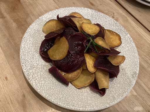 さつま芋チップスは、塩が少し降ってあり、そこに蜂蜜ソースがかかっていました。(ローズマリーの風味はよくわからなかったですが…)