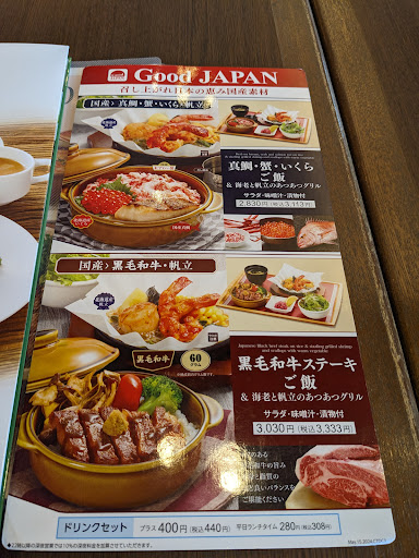 Read moreThis was the first time I had visited a Royal Host restaurant so don't know how it compares with others in the chain. I think the best thing about this place is the location - it's near the equestrian part and there is a broad leafy area that leads to a park where you can park your bike. There is also a car park around the other side. The atmosphere inside is nice, it's a lovely building and the view out to the trees is appreciated. There is a drinks bar with the usual soft drinks, tea, coffee, hot chocolate, and I think they also sell frozen food you can take home. I had the seafood Doria ( first time I had tried that dish) which was good, but not amazing. I guess the food could be a little disappointing, and it's a bit expensive, but good location and the staff were...