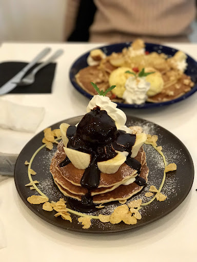 Stylish cafe with exposed brick & vintage touches, serving Japanese-style sweet & savory pancakes.