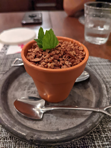 In fact, this place has a very nice lunch course menu for a very reasonable price. Each of the choices basically resembles the taste and appearance of a meat- or fish- based dish. However, there are absolutely no meat or fish products! Amazing! The taste is very close to the original, and the flavor is almost identical. Often, shops who try to make vegetarian food appeal to meat-eaters go wrong because it’s not necessary to make vegetarian food look or taste like meat to be delicious. However, this place does indeed do it justice. Just, as expected, the texture is not completely identical (but pretty close). The desserts are also delicious and fun as well, sometimes coming in a smoke-filled vessel, and other times resembling a pot filled with soil and flowers.