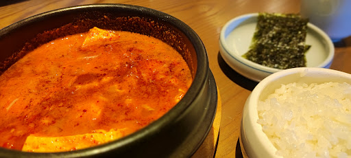Once we got our tofu soup, we thought there had to be a mistake. The stone pot was not even half full (pictures attached). At that point we were disappointed in the restaurant honestly and wished we spent our money elsewhere (not cheap here).