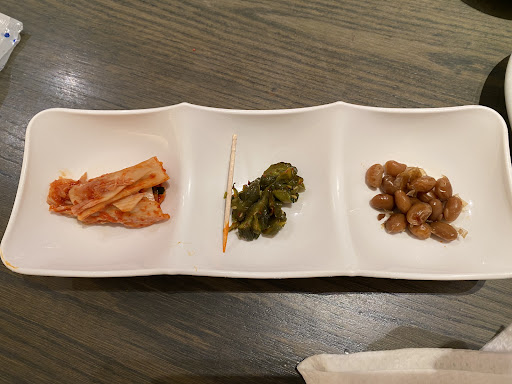 It started off okay with two servings of banchans for me and my partner. We were still full from breakfast, so we decided to only get one meal set that came with tofu soup and kimchi pancakes for sharing. Never had a problem with this elsewhere, but the waitress seemed confused, almost offended that we only ordered one meal. And after (aggressively) taking our order, she took one of our banchan plates away…despite already serving it to us. Apparently if you only order one meal you only get one banchan plate… they’re so small (picture attached) you would think it’s fine but it is what it is I guess, so we grumbled about it but moved on.