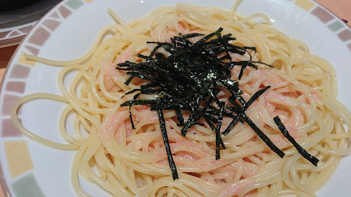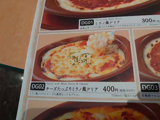 Relatively recently opened shop, so the signage is the latest. Still the same basic Saizeria, of course, with the usual cod Italian music and decor, but easy to use sets of black pepper, powdered cheese, olive oil, etc. Watch out for the non-booth seats, though. Awful plastic efforts!
