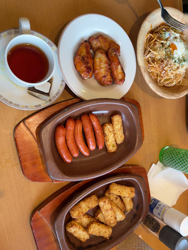 The pasta dishes are consistently good — classic flavors like Neapolitan and Carbonara are tasty and satisfying. Pizza is thin-crust and fresh, with a variety of toppings that please both kids and adults. The salads and sides like garlic bread and fried potatoes are nice complements. For kids, there are simple pasta or hamburger steak options that are easy to eat and well-liked. The portion sizes are decent for the price, and some dishes can be shared. Menu Variety: