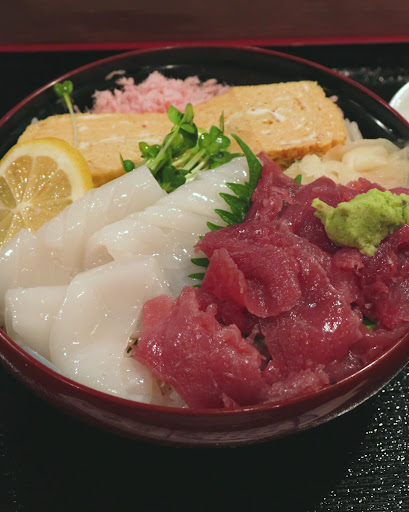 大好きなイカがたらふく食えて幸せ。 中落ちもうまかったし、満足度は高い。 ご飯の量もそこそこある。 ちらし丼の方はネタが豊富で楽しい。 次回来るなら間違いなくこっち。