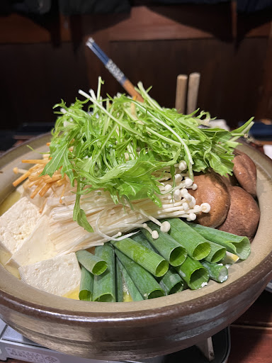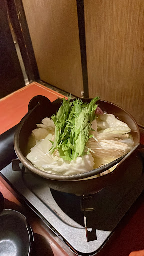 Rich, chicken-flavored mizutaki hot pot at a simple venue with tatami & counter seating.