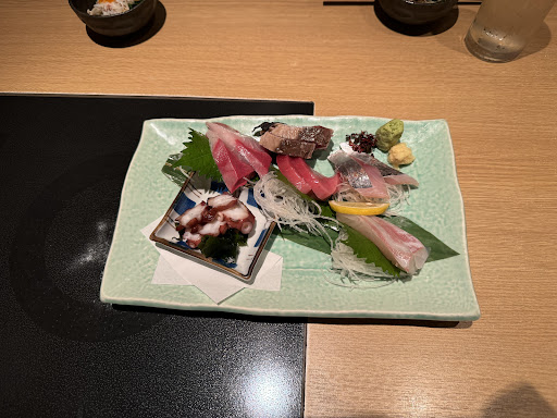 Read moreI will start by saying this restaurant deserves higher ratings. The service was very fast and the food was top quality. We were a group of 5 people that took a variety of dishes (5 type sashimi platter, mix tempura platter, 8 nigiri platter, seafood salad, tamago dish, cucumber appetizer, tofu platter and drinks. The stars had to be the sashimi + nigiri. Every single piece of fish/seafood tasted so fresh. Not to mention the super affordable price (we spent less than 3000yen each). This restaurant does have an Otoshi charge of 400 yen but you get a small seafood appetizer + tea after the meal which was worth it. I highly recommend this restaurant for people that want quality sashimi/nigiri for...