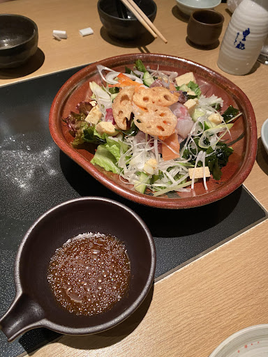 Read moreI want to preface that the overall rating of this place should be higher. I went with a couple of friends and I got the 8 piece sushi set, the seafood salad, the omelette and sake. There is an Otoshi fee but they'll give you an appetizer for it. The food felt fresh and was delicious, not to mention it was quite affordable (around 3000 yen per person for a really good portion). The staff were very kind despite our language barrier. The atmosphere was great and calm, would be a great spot to bring a date. I will return again the next time I visit the...