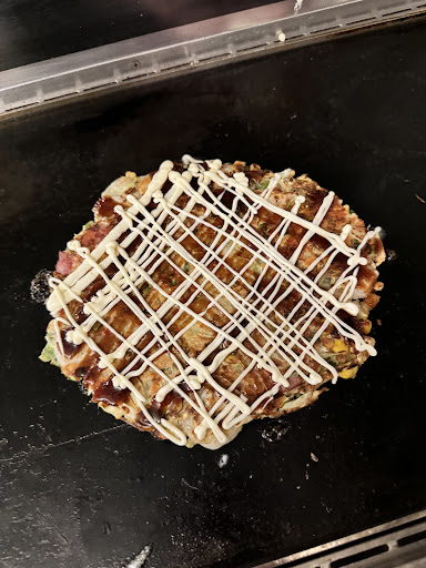 Once we were seated, we were given an English menu and instructions on how to cook the meal. Luckily, the menu is pretty self explanatory. You can order four bowls at a time with one ingredient each. I would skip the options with noodles, they're not as flavorful as the other two options. The monjayaki was the messiest, but it was delicious and my personal favorite. The okonomiyaki was also very flavorful, especially with corn or beef as the one ingredient. The location gives you about a 90 minute time limit. The okonomiyaki does take a while to cook, about 20 minutes. Food wise, everything was really good and they had a lot of options to choose from. The location itself is pretty big, but it had close to no ventilation. I would recommend to call in advance to book a reservation, especially on a weekend night or do a walk in for lunch on a week day (it's definitely cheaper during lunch).