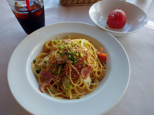 ランチで利用。 利用者が多く、いつも混んでいる。 イタリアン中心でメニューは豊富。 今回はポルチーニ茸のボロネーゼを注文。 疑いを持っていたが、やはりトマトソースの香りにせっかくのポルチーニ茸の香りが消えてしまいただのきのこパスタを食べてる気分でした。 接客はせかせかしてる感じで、席に通された途端注文を聞かれます。 ドリンクバーがあります。 広い窓から見えるロケーションは良いです。 全体的にバランスが良くないですね。