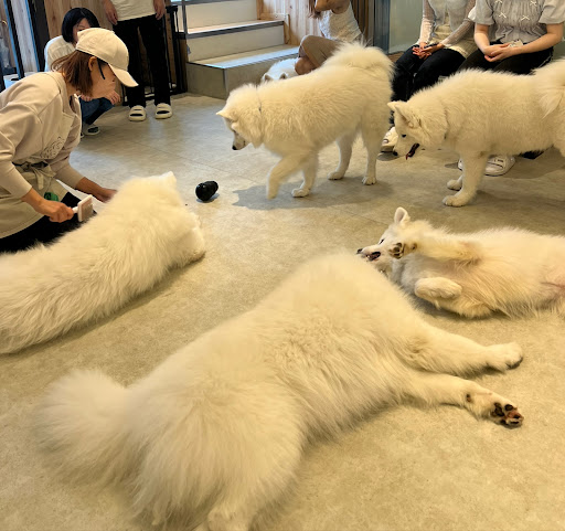 Read moreThe cafe is reservation only with around 12 people per hour time slot. Sibling puppies with oldest around 7 month. They are all very friendly. The visit was 7PM and it was their bedtime. The owners try to attract the puppies with treats so they will come around to meet everyone so it was very much appreciated. However, the experience was a bit disorganized and it was pretty much what you make of it. At a young age they appear bright and know how to bow and shake guest hands. For those who have never owned a dog and want to experience I think it’s excellent. However, for those who have owned a dog, the experience is a...