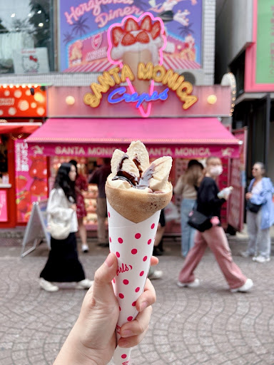 Read moreTried Santa Monica Crepes in Harajuku — it was my first time trying crepes in Japan, so I don’t have a local benchmark to compare to (though it’s not my first trip here). I ordered the banana crepe with chocolate sauce and custard cream. Flavours were decent, but the crepe was cold and a bit soggy — I was expecting something warm and slightly crisp, so the texture was a bit of a letdown.
