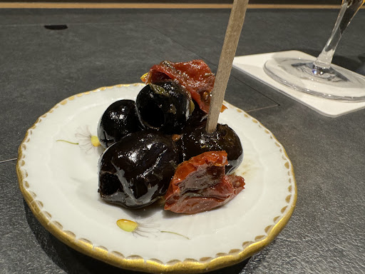 泡の前に泡のビールをいただく。 おつまみ的エントリーで 「オリーブ、トマトのマリネ」が出て来る…甘いけど上品に美味い。ビールじゃなくてスパークリングワインの方が合ったかなぁ、とちょっと思った。