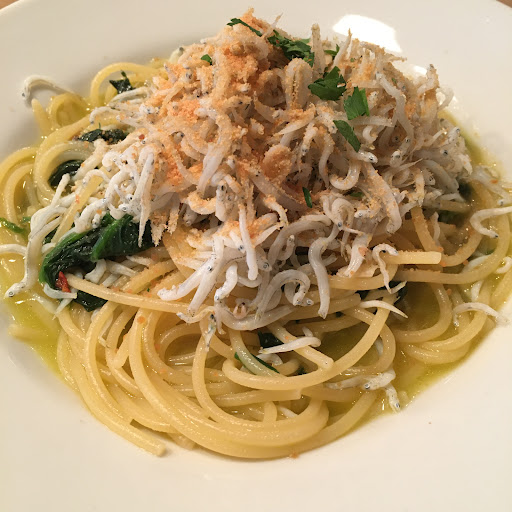 Read more今年1番感動したので投稿。(2020.1.24時点) 通います。投資します。 きっかけは、口コミ評価が高いので、ランチ利用。 12:25で5分ほど待って、入店。 シラスとほうれん草のスパゲティ カラスミがけ (サラダ、パン付き)1050円(税込)を注文。 まず、サラダでコスパの良さを実感。 ランチのサラダって小さなお皿に気持ちばかりのものかと思えば、前菜盛り合わせのような、鶏肉、キッシュ、サラダにラディッシュ乗せ。 パンも、焼き上がりをさらに揚げたような、一手間感じるもの。おかわり出来るのかな⁈ほんと美味しい。でも、パスタと食べたいから頑張って残す。 そして、パスタ。これでもか!とシラスが山盛りで、口の中にうま味と香りが広がり、アルデンテのパスタの口当たりが良き!!! なにこれー!美味しすぎない???この味でこの価格?と感動して、幸せなひとときを噛み締めつつ、手は止まらない。 シラスとほうれん草、たまにカラスミのバランスを調整、残りのスープ⁈オイル⁈にパンを浸して堪能。 サポセントゥ・ディ・アキには、価格以上の幸せを感じられます。 他のメニュー、ケーキとコーヒーも頼んでみたい。 店員さんの心遣い感じる接客、笑顔も心地良かったです。ありがとうございました!!!