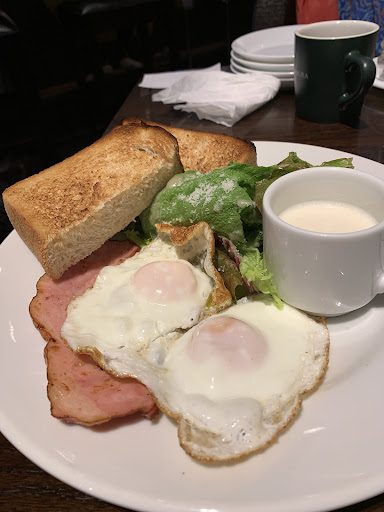 Read moreWe came here for breakfast but they seem to be open for dinner as well. We got the Bacon & Egg set, and French Toast set with Cappuccinos. Breads here is really good. Thick, fluffy and dense . French toast was also really good, crispy on the outside & super soft and moist on the inside. It already has some sweetness (caramelized sugar on top), perfect for me , no need to add more syrup..but if you want it more sweet, there was syrup served in a small cup on the plate. It also had some crème fraiche or some kind of tangy whipped cheese. Eggs (Sunny side up) cooked very well ...egg yolk was oozy! Veggie soup that came with bacon set was prettty yummy ..seasoned well, many ingredients in it. Many vegetables and light. Sausage with egg set was yummy ..bacon was a little too salty for me but beautiful thick cut. Coffee here is surprisingly good. We were originally going to go to Verve or Blue Bottle in the same building but we weren't disappointed with the coffee here. This place has full bar, I saw Japanese whiskey, vodka & sake . I will come back for that. Servers are good and were friendly. Not super smiley friendly but good. Some people were complaining about price. It's in Shinjuku station....get real. It's a sit down place. Rent is gonna be crazy. If you want cheaper food go to a fast food stall or go to a...