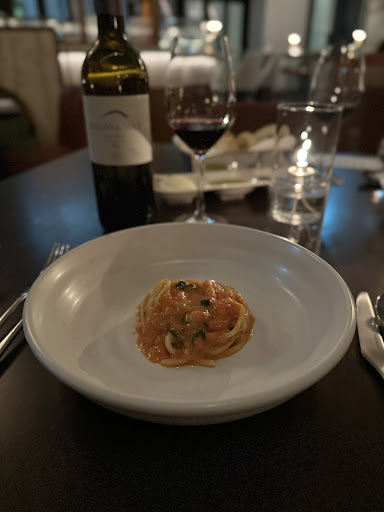 It's in the Toranomon neighborhood in central Tokyo. They offer a la carte as well as a five course dinner. The restaurant allows for ordering a New York style 5 course menu or what I would call a Japanese influenced 5 course menu. Go with the Japanese influenced version: it’s called the "La Dolce Vita" with wine paring. La Dolce Vita is an omakase of five dishes and a desert. They were all memorable. It started with insanely good crudo (Italian sushi) and worked it's way up. I could not believe the spaghetti bolognese. I lived in New York City and have been to Italy four times and I don’t think I’ve had better spaghetti Bolognese.