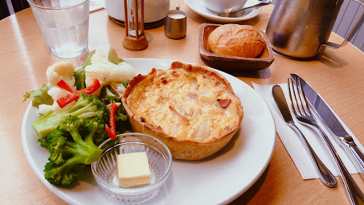 おすすめは、ランチ不毛地帯成城にあって素晴らしいコスパのキッシュセット。10cmくらいのホールキッシュにフレッシュサラダとブリオッシュ&バター、さらにケーキとドリンクがついて1375円(税込) キッシュは塩気とほんのりとした甘み、そしてバター感たっぷりのザクザクパイ生地がとても美味しい。アパレイユはふるふるで茶碗蒸しくらいの固さ。全体に濃厚で味しっかり目だけど、これに酸味が効いたさっぱりドレッシングのサラダがとても良いバランスで、なかなかのボリュームながら最後まで飽きずに食べられる。 この日の野菜はブロッコリー、カリフラワー、パプリカ、レタス。固めの茹で加減もグッド。
