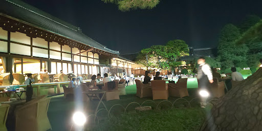 Sophisticated, open-air restaurant with a grassy lawn at the stately Meiji Kinenkan event venue.