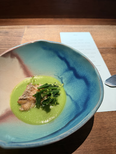 この時点でハッとする。 この店のシェフは料理人ではなくビジネスマンなのだと。 皿の上の料理は謂わば夜景なのである。 中身は全く異なるが、パッと見には高級店とも見えるような料理をこの値段で食べることのより、「自分は本質が分かる人間だ」と思い込みたい層にブッ刺さっている。 そのため、シェフに教祖的な要素さえまとわせれば、スタッフの質は低くても問題ないのである。 前述の「シェフの目配りができていない」を訂正し、「シェフが目配りの必要性を感じていない」とする。 そのため、今後も良い店になる可能性はゼロである。