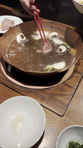 We had no reservations but arrived when they opened so we were able to be seated at the bar as a party of 2 for dinner. We got the cheapest course meal and some alcoholic drinks. Everything from the broth, the meat, the dipping sauces, the veggies were perfect. I could have done without the extras that came with the set like the pasta and cheese dumpling, but it was still a unique take on shabu. Everything was explained well in English by our server which was a nice plus. The restaurant interior was sophisticated and the vibes were great.