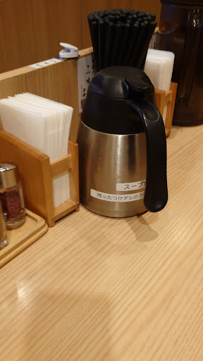 壁を向いたカウンター席にはスープ割りのポットが置いておらず、席を離れた別のカウンターの電気ポットに入っているスープ割りを汲みに行かねばならないこと。