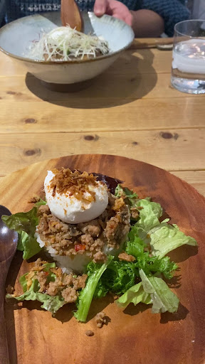 The BRUNCH MENU, available at noon on weekends is my recommendation. You can choose from gyoza,pasta or meat sets. The house signature is gyoza so I got the gyoza set which came with: an entree+ sui gyoza + four types of grilled gyoza+ main dish and dessert. For around ¥1800. I say set, but honestly it was more like a course experience, with each dish coming carefully one after the other in the most beautiful presentation and the staff explaining to us the particularity of each dish. The food was Impeccable, I cannot recommend enough the dumplings (flavors I think are seasonal, and a mix of many Asian cuisines). The main dish, that you can choose for the set (we got gapao and bulgogi don) is of course good, but nothing compared to the dumplings. I’d go back to try all the creations of the house.