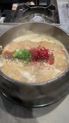 目の前で作られる参鶏湯は、グツグツしてきたらスタッフの方が薬膳を入れて完成✨超あっつあつ良い匂いが漂います💕
