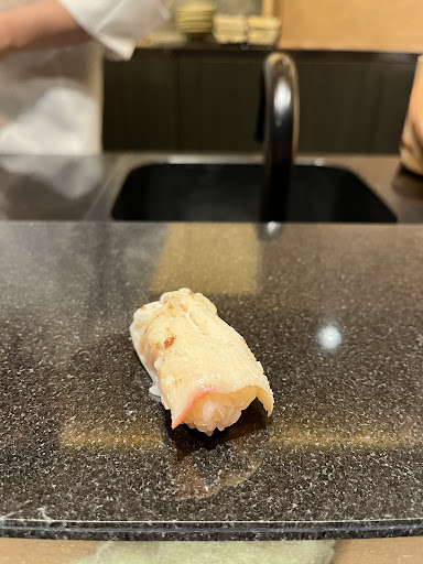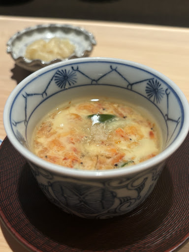 Sashimi (fish) had an interesting variety but not worth 33000yen. The only expensive thing was the UNI. There was no ikura, no crab, nothing special... There was very little to no interaction btw the main chef and us, only the apprentice introduced the dishes. The chef only entertained the grp which were ordering lots of alcohol and were really rowdy. The chawanmushi seemed undercook. The tiger prawn was not sweet either. The fried yellow butterfish was underwhelming. The conger eel roll was also underwhelming. The miso soup was nothing special. The tamago was an interesting mix of scallop and hojicha thou. The unagi was nice as well. The usual tuna cuts were nice. The sashimi with the grilled skin was realllllly good thou. Chef had good knife skills as well.