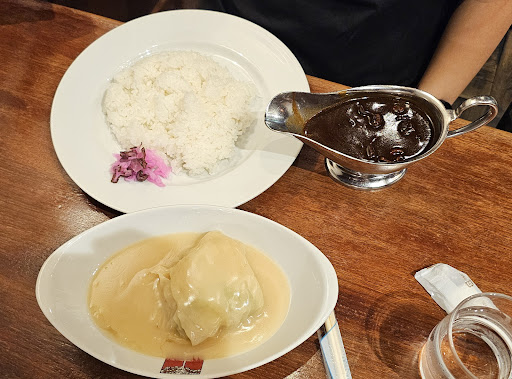 Read moreThe place was surprisingly popular for a hole in the wall restaurant, there was already a small line inside when I got there, but I only had to wait 5 minutes to get in though so it was fine. The cabbage roll was piping hot and the thickness of the soup was nice, the curry was alright, the jazzy music and cafe type of atmosphere was quite relaxing, though I felt like I had to leave soon since there were people waiting. They also had some kind of vinegar sauce and demi-glace sauce for you to use. I especially liked the demi-glace sauce. Overall a unique place to enjoy some alone time. Would be better if it weren't so crowded though. Took some interior pictures but somehow turned...