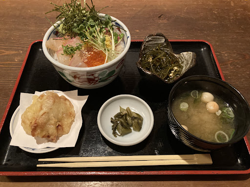 鯛なまめし(1,200円)をいただきました。 靴を脱いで入店するタイプのお店です。 靴は店員さんが下駄箱に入れて管理をしてくれます。 季節のおすすめの鰹たたき丼が食べたかったですが、早々に売り切れだった為、鯛をお願いしました。 付け合わせは味噌汁、かしわ天、切り昆布の煮物、漬け物で、ご飯と味噌汁はおかわり自由でした。 丼には鯛といくら、錦糸卵が載っていました。 鯛は捌きたてではなく熟成されており、しっとりとしていて柔らかく美味しかったです。 ご飯にもしっかりとタレがかかっていますが、優しめの味付けなので、物足りない方は卓上の醤油で調整されれば良いかと思いました。 丼は縦に細長いタイプのお洒落な物でした。 かしわ天は大ぶりの物が一つ。 そこまでパンチは強くないですが、しっかりと下味が付いている物でしたので、箸休めに良かったです。 1人でも4人用の個室に案内していただけ、感染対策もバッチリでした。 やや壁までの距離が近い個室ですが、ゆっくりと昼食を楽しみたい方にはうってつけのお店かと思いました。 帰りはお会計が終わると靴が用意されていてスムーズに退店する事ができました。 気持ちが良いランチタイムを有難うございました。